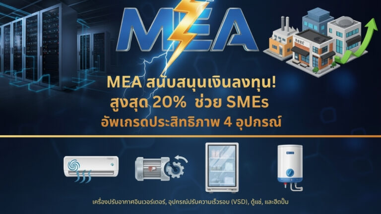 ⚡ MEA สนับสนุนเงินลงทุน! สูงสุด 20% ช่วย SMEs อัพเกรดประสิทธิภาพ 4 อุปกรณ์ การไฟฟ้านครหลวง (MEA) เชิญผู้ประกอบการ SMEs เข้าร่วมโครงการเพิ่มประสิทธิภาพการใช้พลังงาน รับการสนับสนุนเงินสูงสุด ร้อยละ 20 ของราคาอุปกรณ์ประสิทธิภาพสูง 4 เทคโนโลยี ที่โครงการได้คัดเลือก อุปกรณ์ที่ลดค่าไฟฟ้าได้สูง คืนทุนเร็ว มาสนับสนุน ปีแรก เปิดตัวด้วย 2 อุปกรณ์ก่อน เครื่องปรับอากาศอินเวอร์เตอร์ และอุปกรณ์ปรับความเร็วรอบ (VSD) และปีที่สอง เพิ่มอีก 2 อุปกรณ์ คือ ตู้แช่ และฮีตปั๊ม สมัครเข้าร่วมโครงการได้แบบออนไลน์…