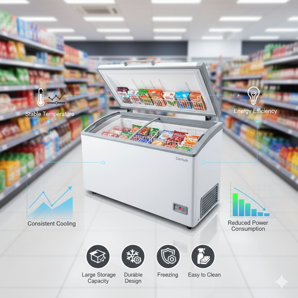 - รักษาคุณภาพสินค้าดีขึ้น: ด้วยระบบควบคุมอุณหภูมิที่แม่นยำและสม่ำเสมอ ช่วยยืดอายุและคงความสดใหม่ของสินค้าที่แช่ได้นาน