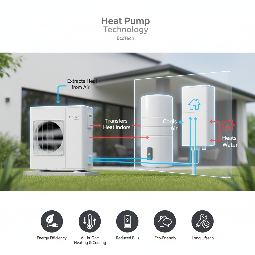 - ประหยัดพลังงานสูง: ใช้ไฟฟ้าเพียงเล็กน้อยในการย้ายความร้อนจากที่หนึ่งไปอีกที่หนึ่ง ประหยัดกว่าระบบทำความร้อนแบบใช้ไฟฟ้าโดยตรง